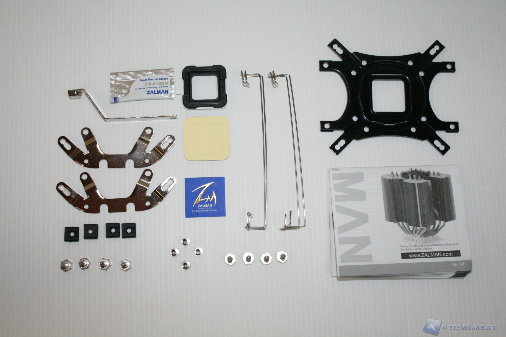 Il bundle è elementare, ma sono presenti le clip per il montaggio di ben due ventole addizionali e la nuovissima pasta termica Zalman ZM-STG2, purtroppo in bustina. La scatola di presentazione è buona, anche l’imballo è uno dei punti deboli dell’unità, che potrebbe subire danneggiamenti in caso di spedizioni turbolente.
