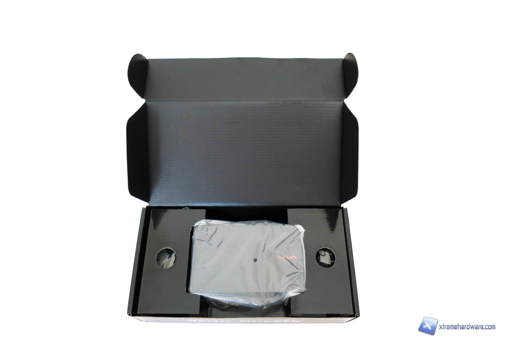 Rimosso tale sigillo procediamo ad aprire la confezione che si fa sempre più curata. Notiamo infatti la scritta “Xpress Incredible” motto dei Mini-PC LIVA X.