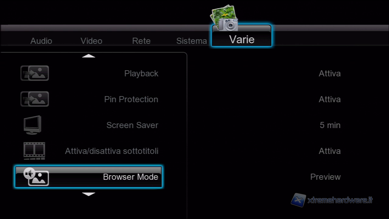 Questa in pratica è la voce di menù che verrà usata il 90% delle volte perché è quella relativa al riproduttore multimediale di rete, che abbiamo visto essere forse la caratteristica più utilizzata da questo tipo di dispositivi (tanto che altri produttori hanno prediletto questa rispetto alle altre).